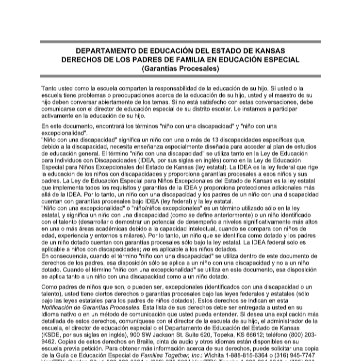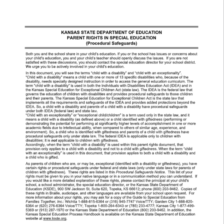 Kansas Parent Rights (Procedural Safeguards)